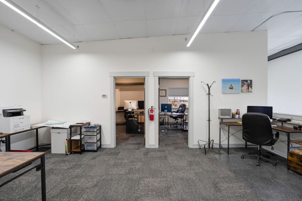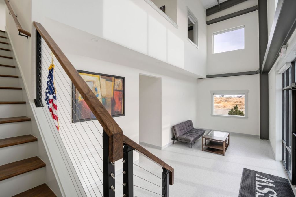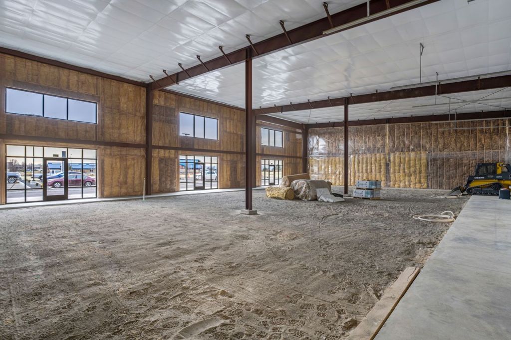 Modern commercial building at sunset, highlighting clean architecture and quality exterior finishes.Contemporary restaurant and retail structure featuring bold design and welcoming entry.Interior construction progress showing slab preparation and structural steel framing.Open-span interior under development with steel framing and large storefront windows.Multi-bay industrial building with roll-up doors designed for flexible commercial use.Completed office space with modern finishes, bright lighting, and a clean, functional layout.A bright, modern break area designed for comfort and daily use. A great example of the clean, functional spaces we build.An open, well-lit stairway with warm wood accents. Clean design that shows the attention to detail we bring to every project.A clean, durable stairwell built to handle daily traffic. Strong, simple design your building can rely on.A bright, open entryway with glass doors and modern styling. A first impression that sets the tone for any business.A wide winter view of the facility showing its strong, well-planned layout. Built to perform in all seasons.A front view of the completed buildings and parking area. A solid example of our commercial construction done right.A finished commercial building with warm evening lighting. A great showcase of the high-quality, professional spaces we create.